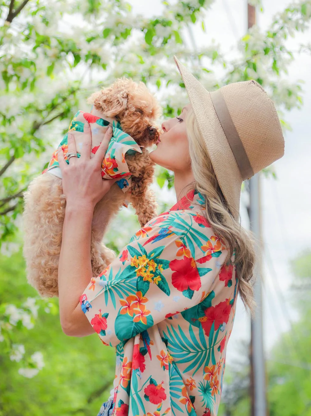 Celebrate your special bond with this colorful matching set by Dog Threads. Made from a lightweight fabric featuring a vibrant tropical print, perfect for your next party. This best selling style has been updated with a roomier fit for unisex adult sizes XL & XXL.